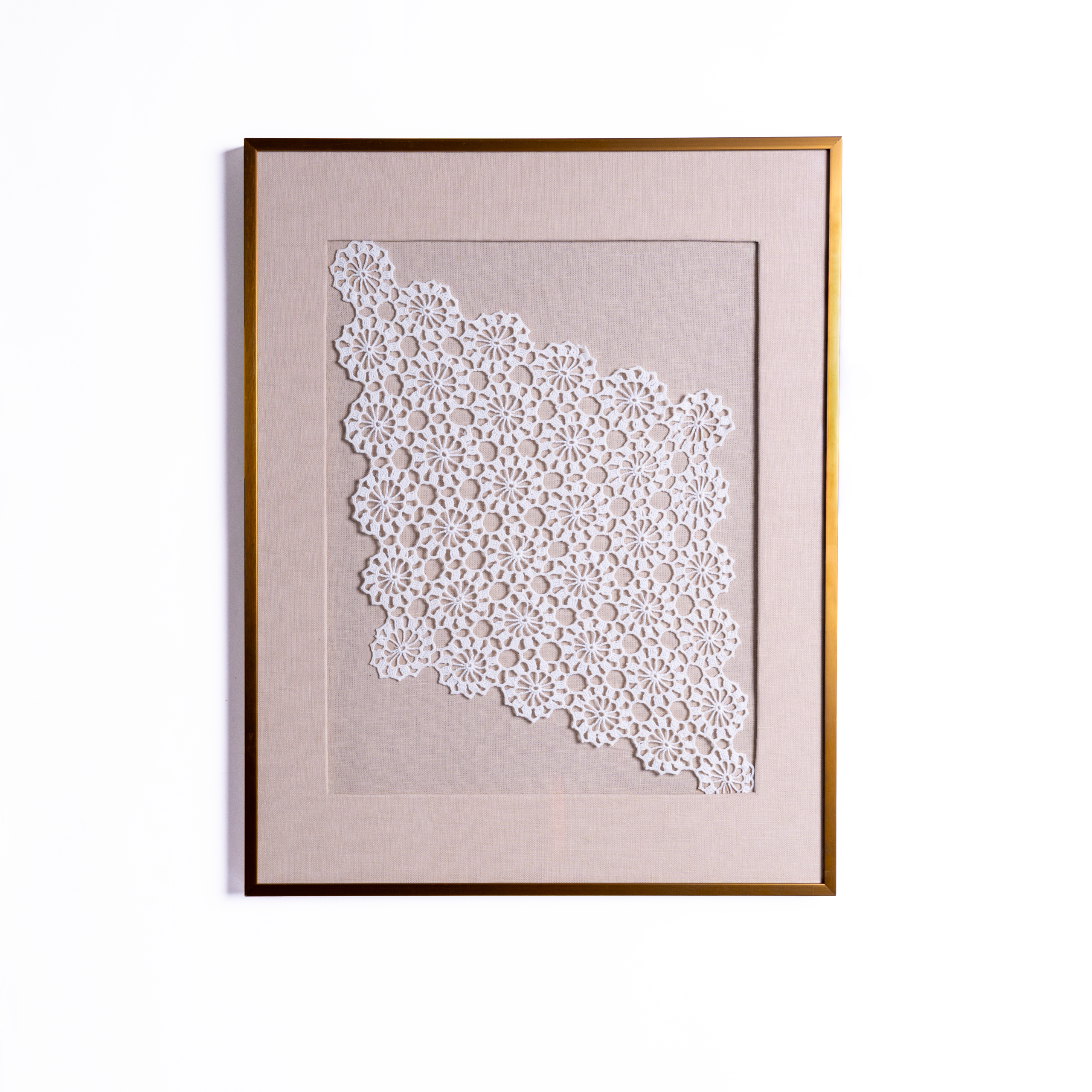 “Eternal Bloom” captures the timeless beauty of handmade lace, intricately woven into a floral design that symbolizes everlasting elegance and unity. Each delicate thread is the result of meticulous craftsmanship by skilled artisans, preserving the artistry of a bygone era. Framed in a sleek, modern metal frame with a soft linen backdrop, this piece bridges the gap between tradition and contemporary decor. Perfect for creating a warm, inviting ambiance, Eternal Bloom is not just art—it’s a celebration of heritage and human touch.